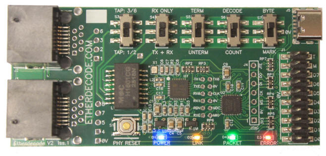 The Etherdecode unit receives and decodes 100Mbit ethernet